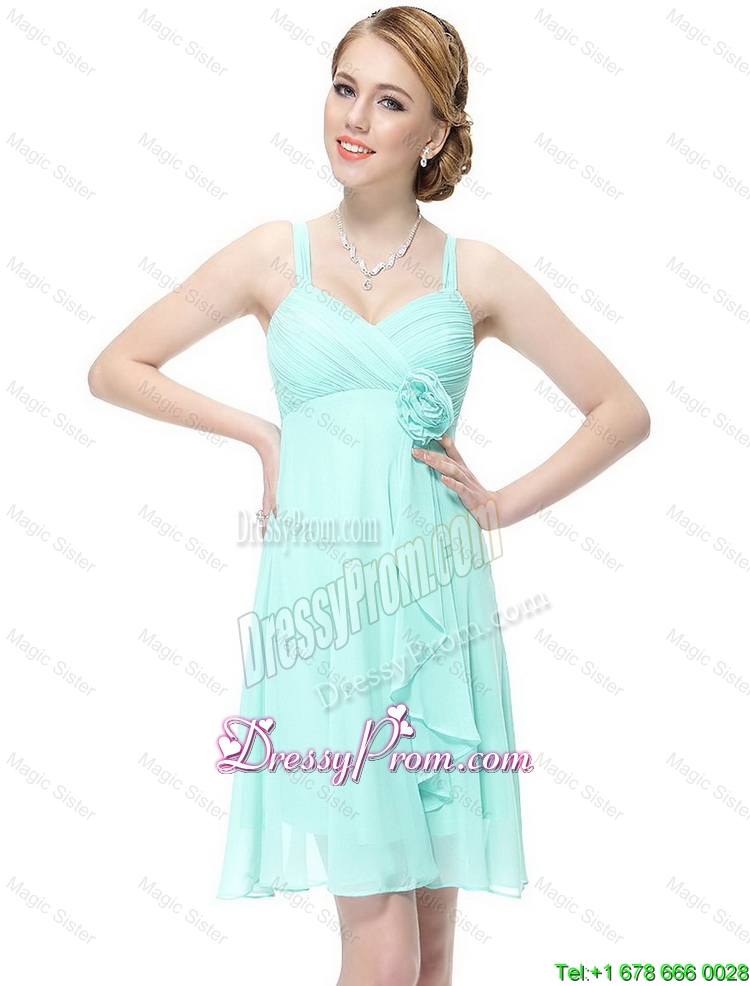 New Style Short Hand Made Flowers Prom Dresses 2016 with Straps