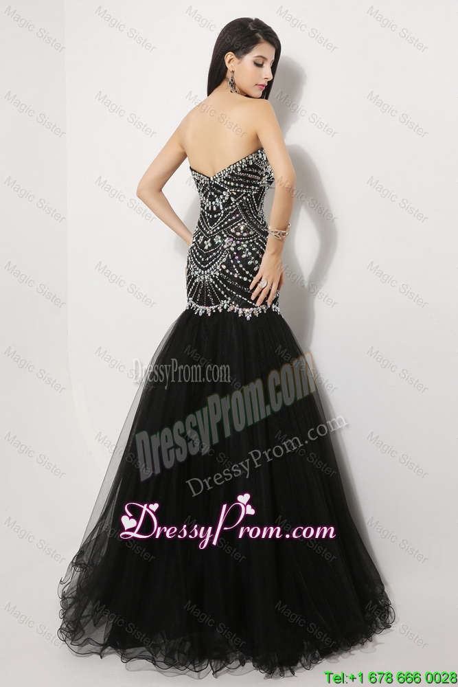 Neckline : SweetheartShown Color : BlackSilhouette : MermaidSleeve Length : sleevelessHemline : floor lengthBack Detail : ZipperFabric : OrganzaEmbellishment : BeadingOccasion : Prom,Formal Evening,PageantSeason : Spring,Summer,Fall,Winter