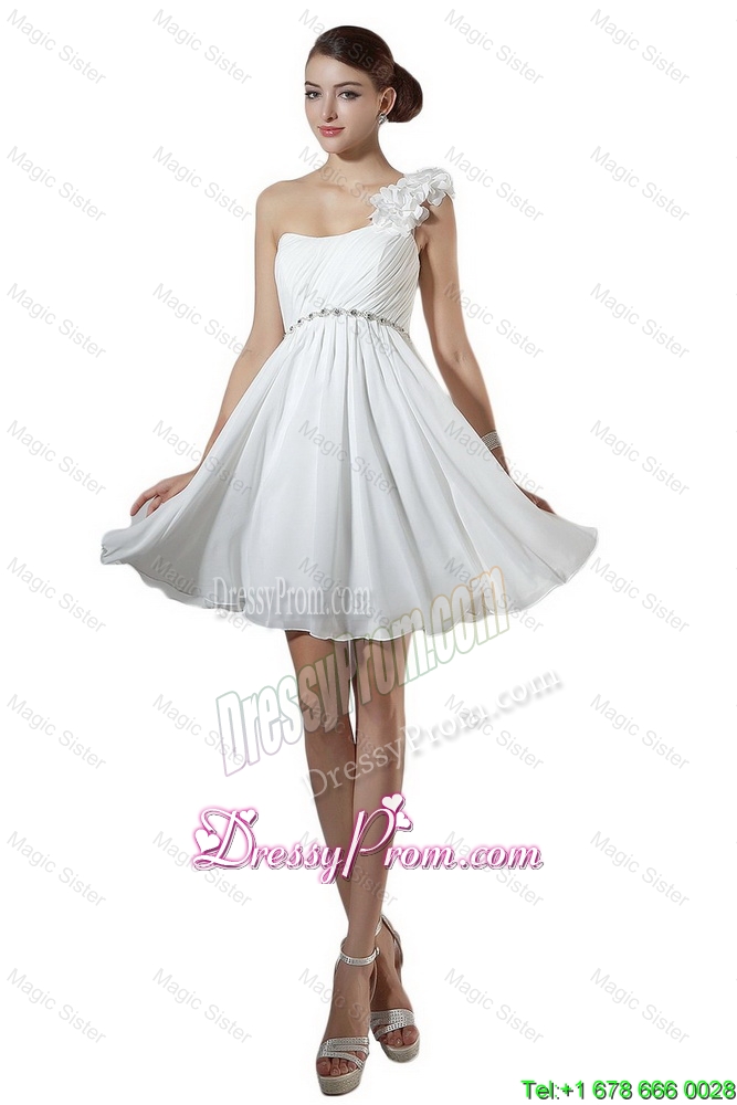Elegant Empire One Shoulder Short Prom Dresses in White