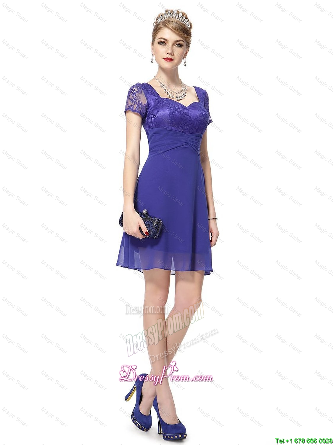 Neckline : SweetheartShown Color : PurpleSilhouette : ShortSleeve Length : short sleevesHemline : mini lengthBack Detail : ZipperFabric : ChiffonEmbellishment : LaceOccasion : Prom,Party,Cocktail,Homecoming,Graduation,HolidaySeason : Spring,Summer,Fall