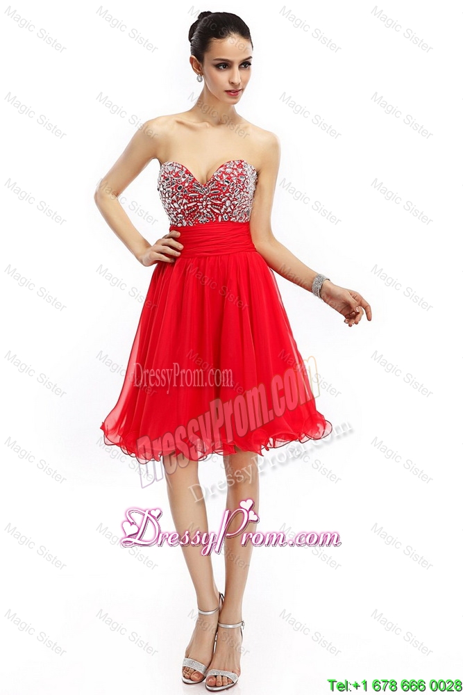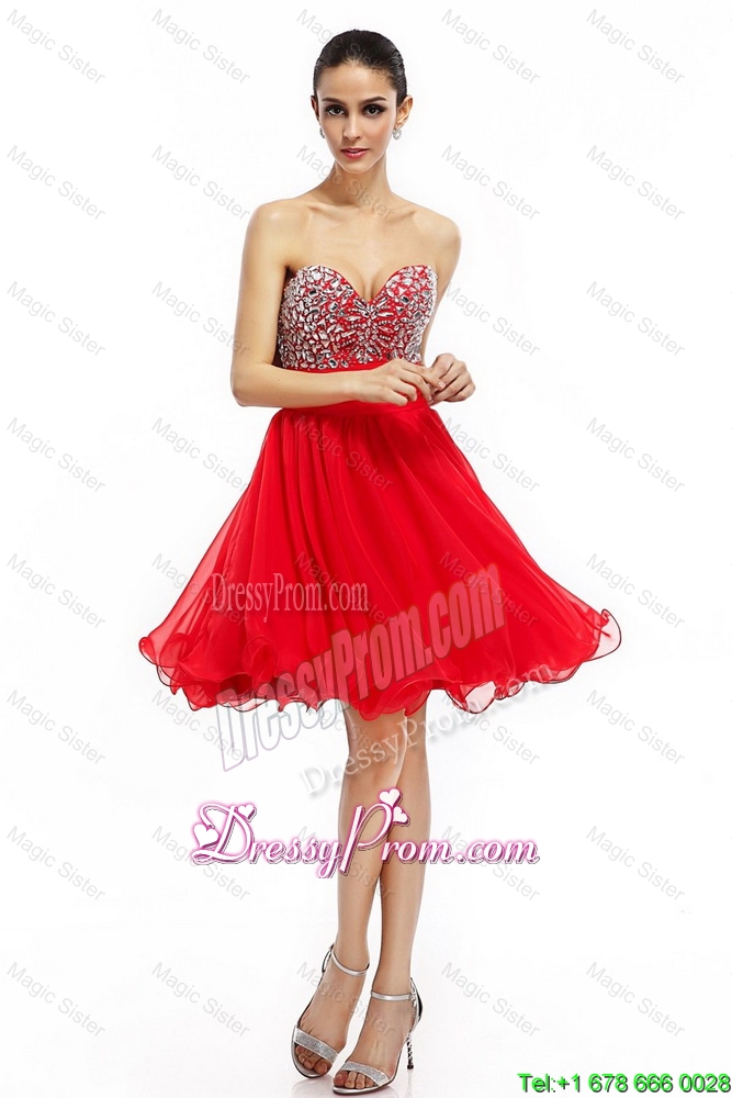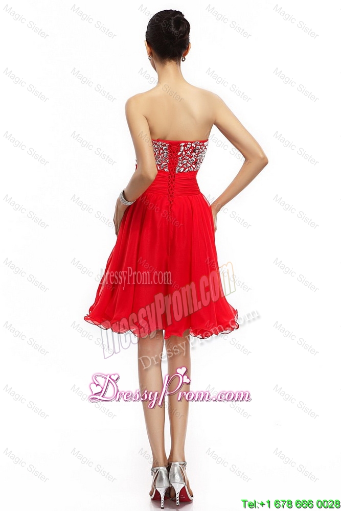 Neckline : SweetheartShown Color : RedSilhouette : A-lineSleeve Length : sleevelessHemline : mini lengthBack Detail : Lace upFabric : OrganzaEmbellishment : BeadingOccasion : Prom,Party,Cocktail,Homecoming,Graduation,HolidaySeason : Spring,Summer,Fall