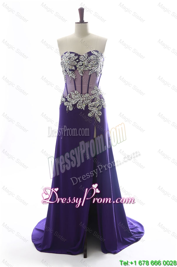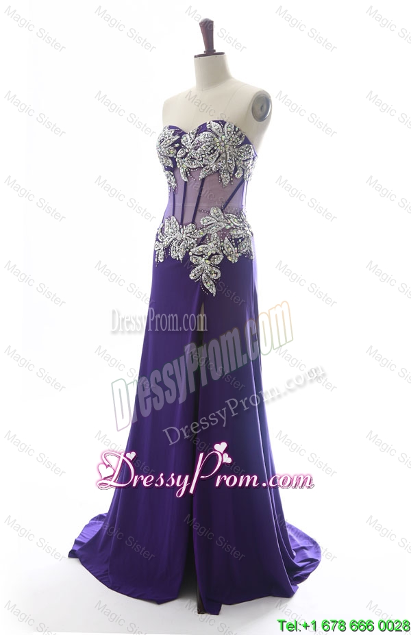 Neckline : SweetheartShown Color : PurpleSilhouette : Column/SheathSleeve Length : sleevelessHemline : with trainBack Detail : ZipperFabric : ChiffonEmbellishment : BeadingOccasion : Prom,Formal Evening,Homecoming,Graduation,Pageant,HolidaySeason : Spring,Summer,Fall,Winter