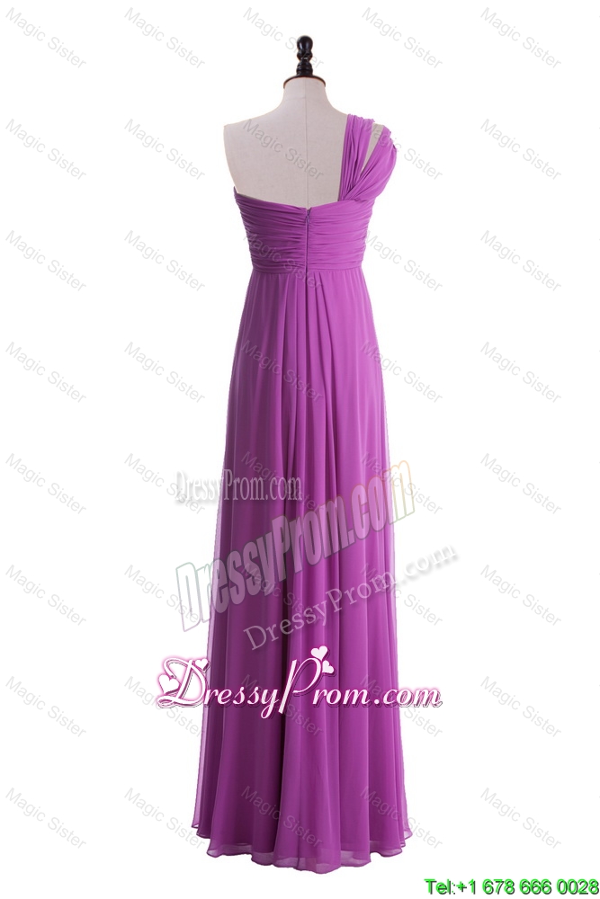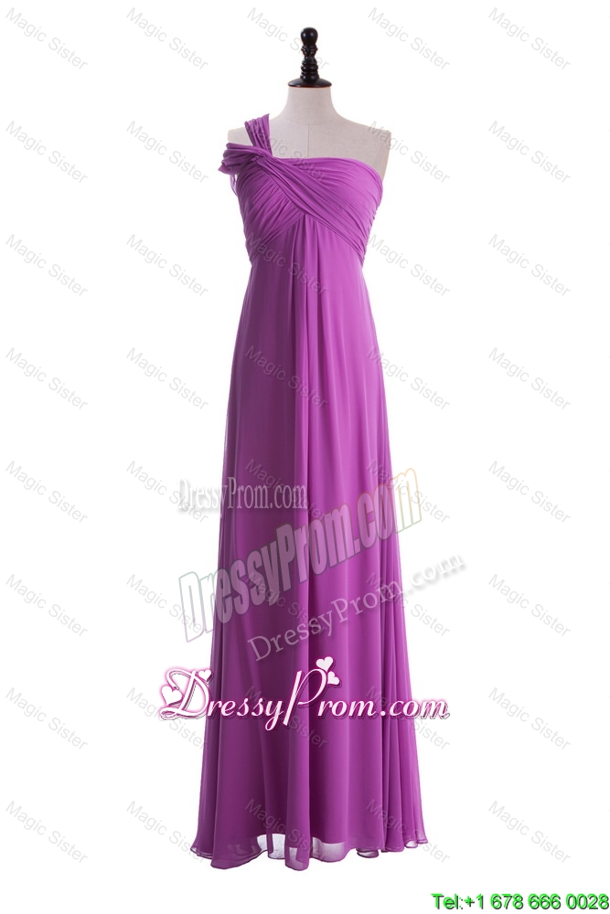 Neckline : One shoulderShown Color : FuchsiaSilhouette : EmpireSleeve Length : sleevelessHemline : floor lengthBack Detail : ZipperFabric : ChiffonEmbellishment : RuchingOccasion : Prom,Formal Evening,Homecoming,Graduation,HolidaySeason : Spring,Summer,Fall,Winter