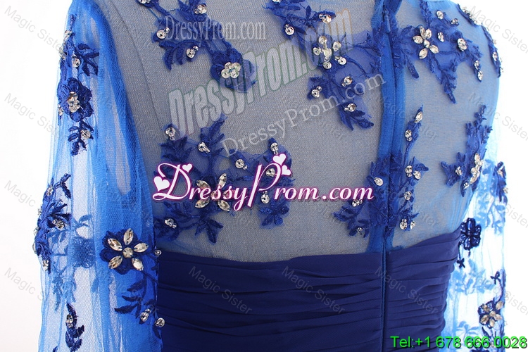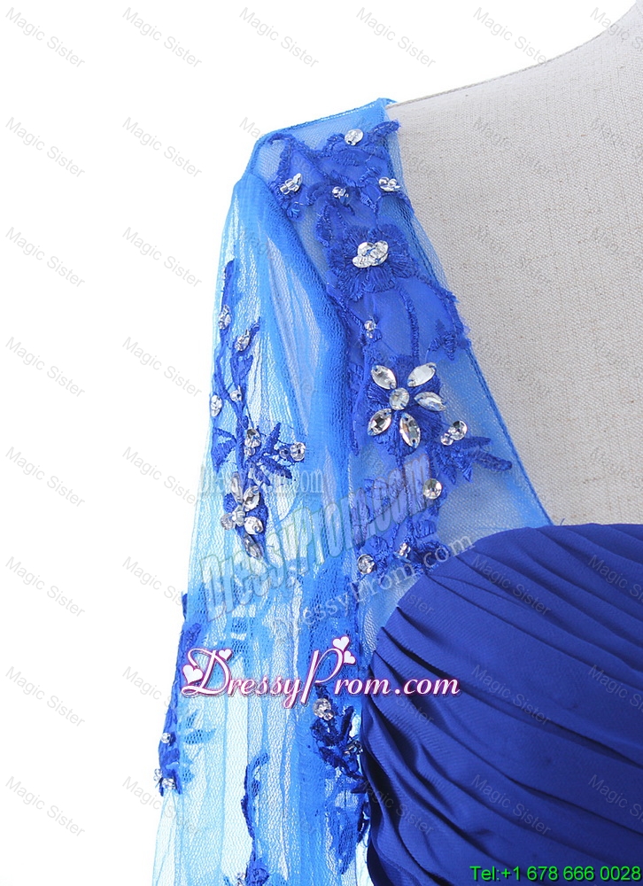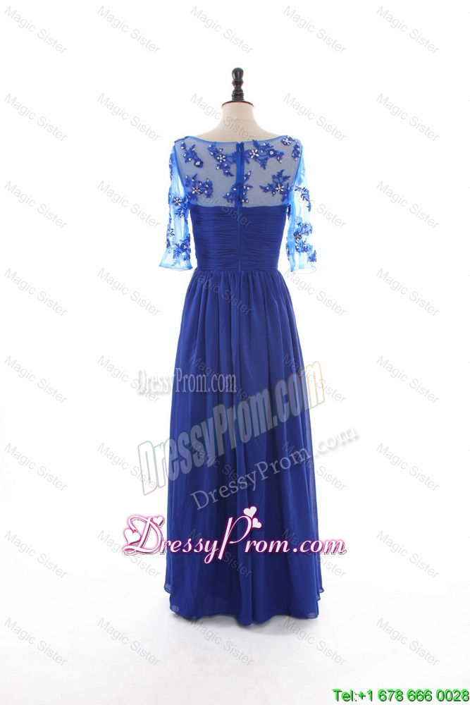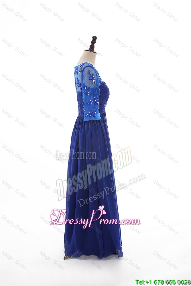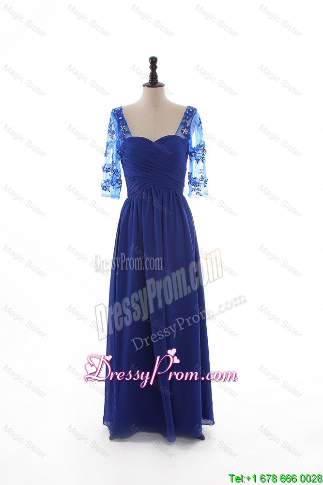 Neckline : SweetheartShown Color : BlueSilhouette : EmpireSleeve Length : half sleevesHemline : floor lengthBack Detail : ZipperFabric : ChiffonEmbellishment : Beading,RuchingOccasion : Prom,Formal Evening,Homecoming,Graduation,HolidaySeason : Spring,Summer,Fall,Winter