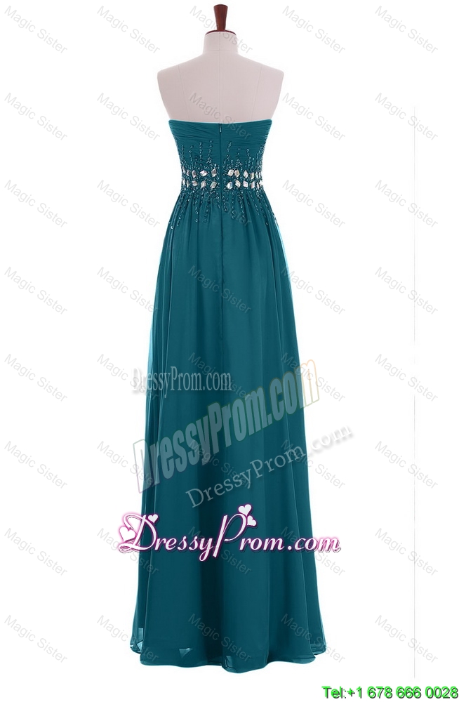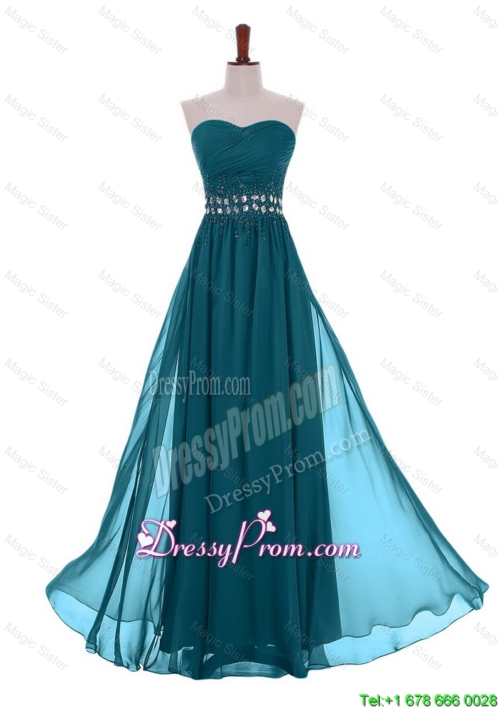 Neckline : SweetheartShown Color : Teal Silhouette : EmpireSleeve Length : sleevelessHemline : floor lengthBack Detail : ZipperFabric : ChiffonEmbellishment : Beading,BeltOccasion : Prom,Formal Evening,Homecoming,Graduation,HolidaySeason : Spring,Summer,Fall,Winter
