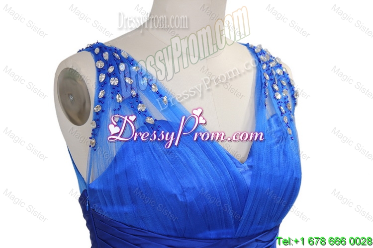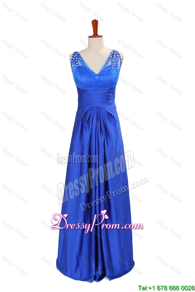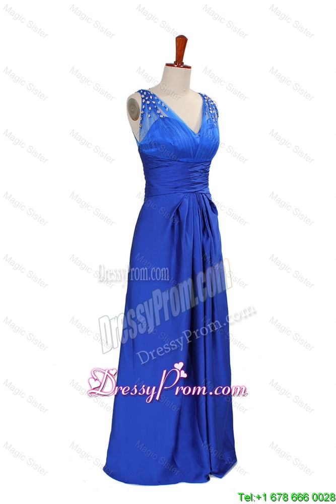 Neckline : V-neckShown Color : BlueSilhouette : EmpireSleeve Length : sleevelessHemline : floor lengthBack Detail : Side zipperFabric : TaffetaEmbellishment : BeadingOccasion : Prom,Formal Evening,Homecoming,Graduation,HolidaySeason : Spring,Summer,Fall,Winter