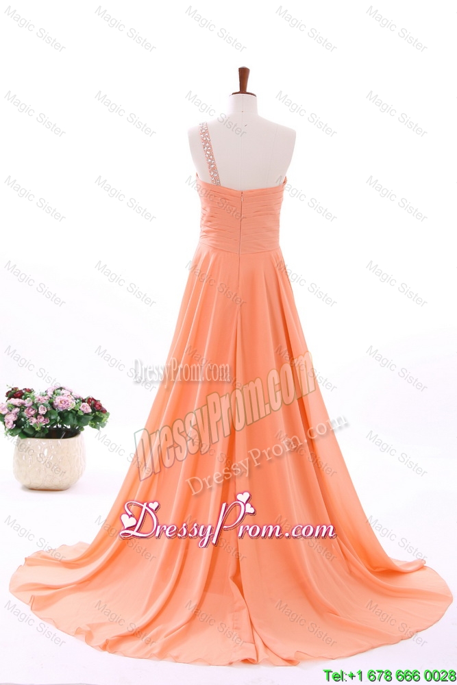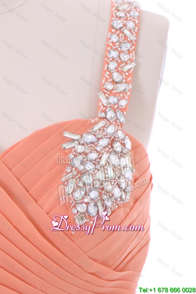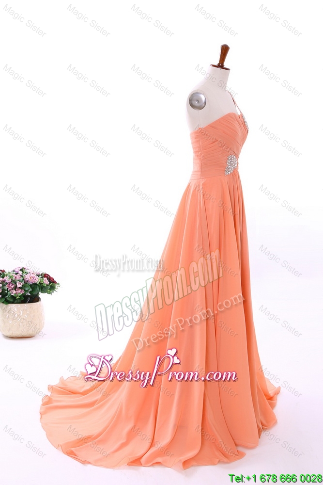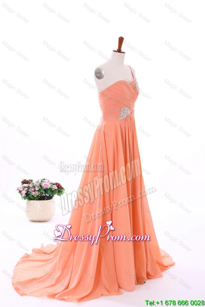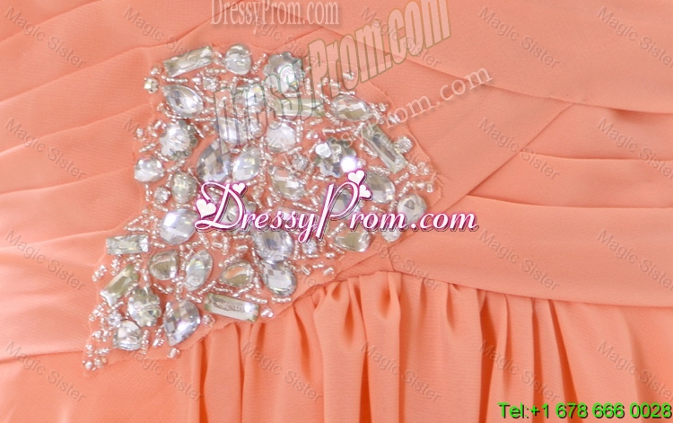 Neckline : One shoulderShown Color : OrangeSilhouette : EmpireSleeve Length : sleevelessHemline : with trainBack Detail : ZipperFabric : ChiffonEmbellishment : BeadingOccasion : Prom,Formal Evening,Homecoming,Graduation,HolidaySeason : Spring,Summer,Fall,Winter