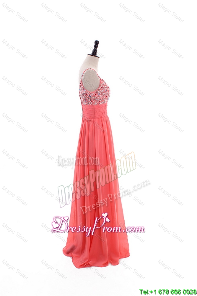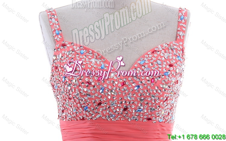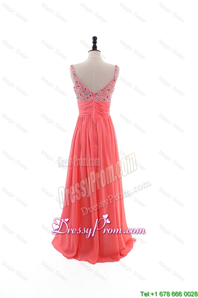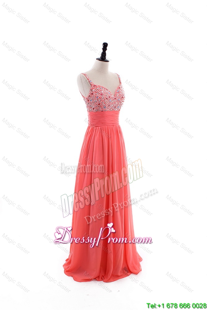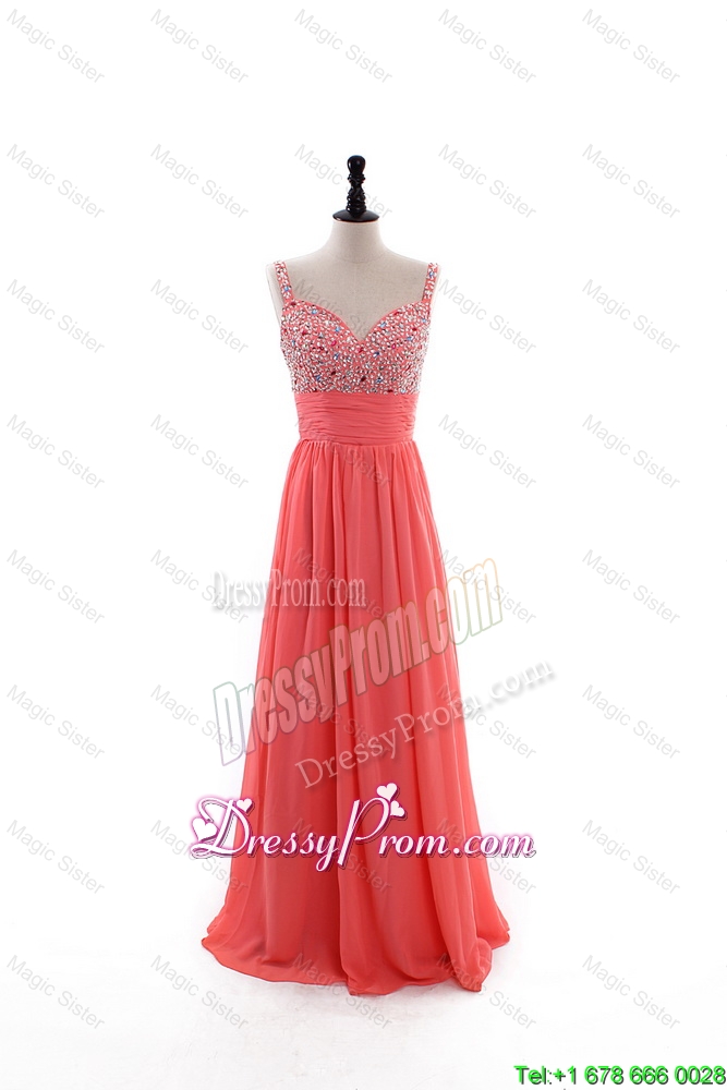 Neckline : StrapsShown Color : Watermelon RedSilhouette : EmpireSleeve Length : sleevelessHemline : floor lengthBack Detail : ZipperFabric : ChiffonEmbellishment : BeadingOccasion : Prom,Formal Evening,Homecoming,Graduation,HolidaySeason : Spring,Summer,Fall,Winter