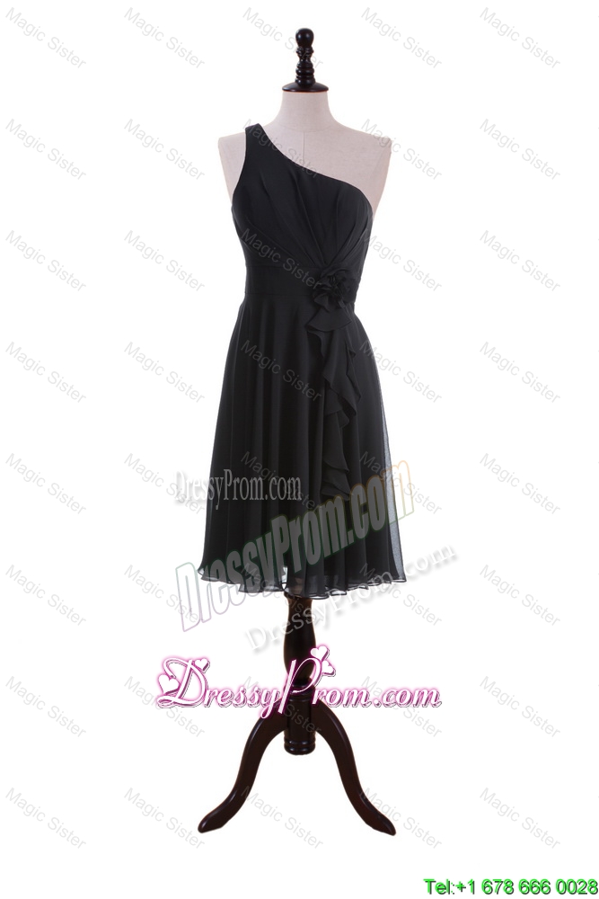 Neckline : One shoulderShown Color : BlackSilhouette : ShortSleeve Length : sleevelessHemline : knee lengthBack Detail : ZipperFabric : ChiffonEmbellishment : RufflesOccasion : Prom,Party,Cocktail,Homecoming,Graduation,HolidaySeason : Spring,Summer,Fall