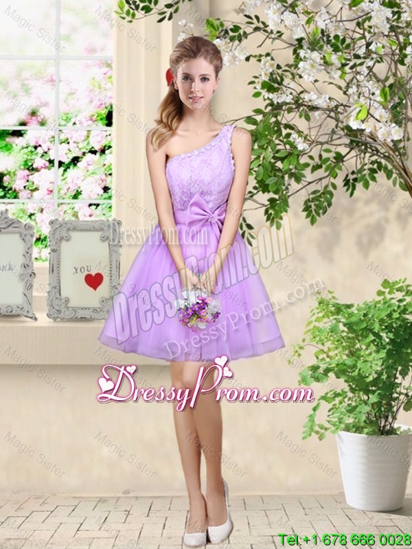 Neckline : One shoulderShown Color : LavenderSilhouette : A-lineSleeve Length : sleevelessHemline : mini lengthFabric : TulleEmbellishment : Lace,BowknotOccasion : Prom,Party,Homecoming,Wedding PartySeason : Spring,Summer,Fall