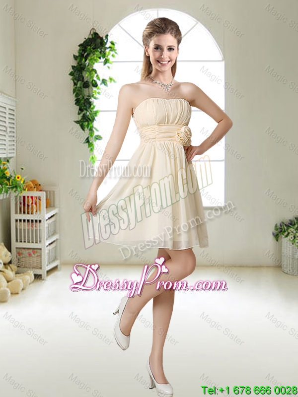 Perfect Strapless Dama Dresses with Hand Made Flowers