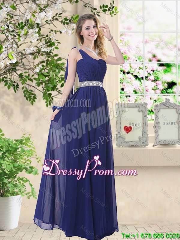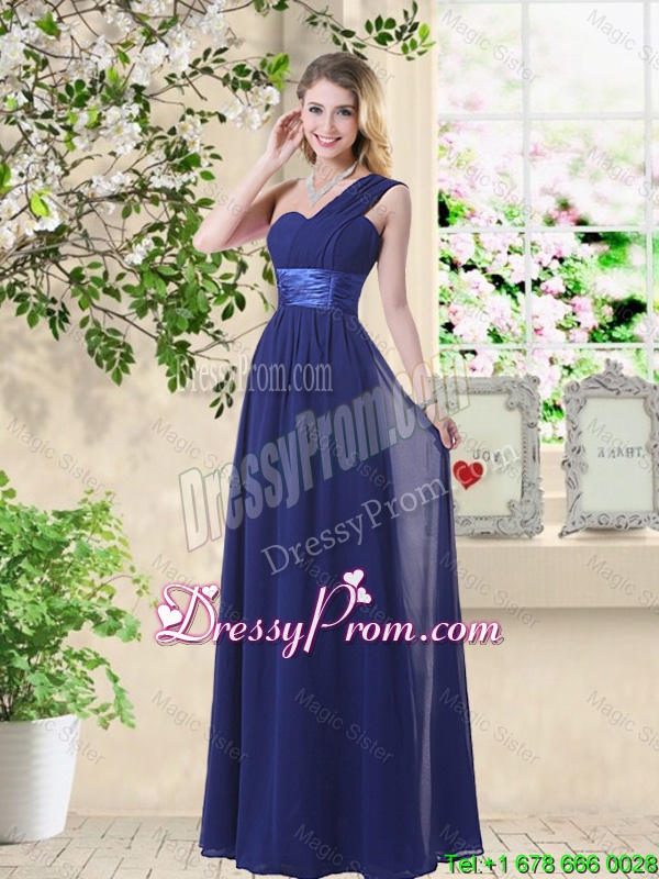 Neckline : One shoulder Shown Color : Navy Blue Silhouette : Empire Sleeve Length : sleeveless Hemline : floor length Back Detail : Zipper Fabric : Chiffon Embellishment : Sashes|ribbons,Sequins,Ruching,Belt,Hand Made Flower Occasion : Prom,Party,Homecoming,Wedding Party Season : Spring,Summer,Fall,Winter
