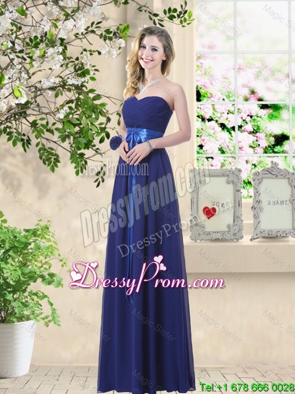 New Style Empire Floor Length Dama Dresses in Navy Blue