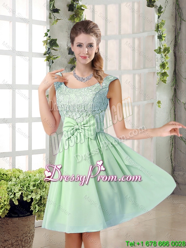 Neckline : Scoop Shown Color : Apple Green Silhouette : A-line Sleeve Length : sleeveless Hemline : mini length Back Detail : Lace up Fabric : Chiffon Embellishment : Lace,Bowknot Occasion : Prom,Party,Homecoming,Wedding Party Season : Spring,Summer,Fall
