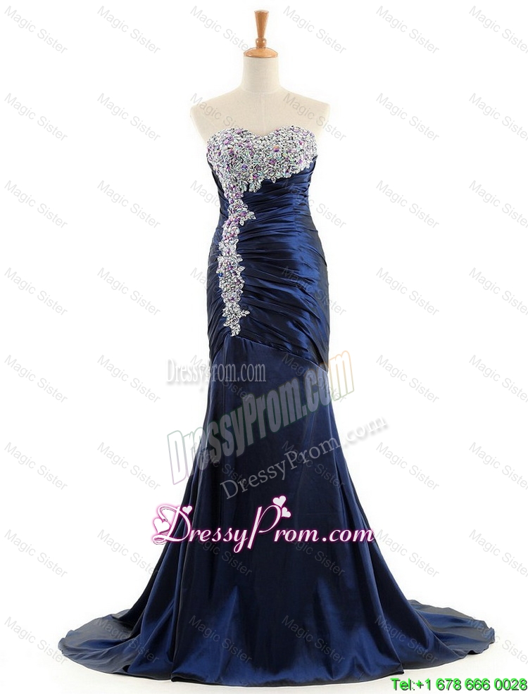 Neckline : Sweetheart Shown Color : Royal Blue Sleeve Length : sleeveless Hemline : with train Back Detail : Lace up Fabric : Taffeta Embellishment : Beading,Appliques Occasion : Prom,Formal Evening,Homecoming,Graduation,Pageant,Holiday Season : Spring,Summer,Fall,Winter