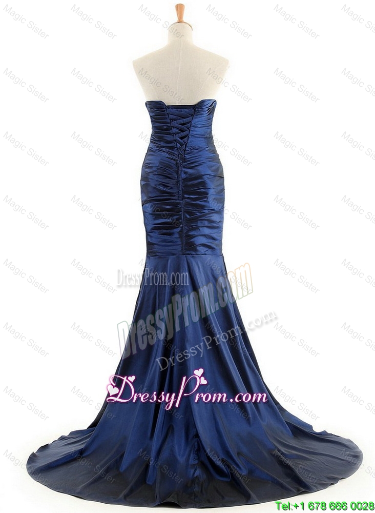 Custom Made Mermaid Royal Blue Prom Dresses with Brush Train