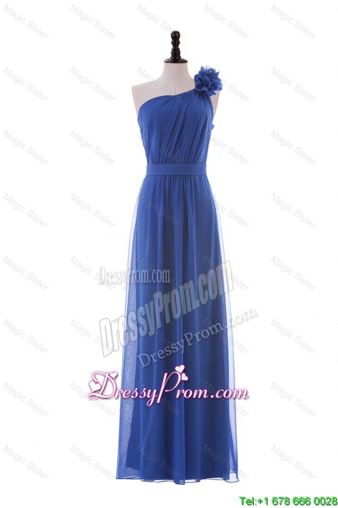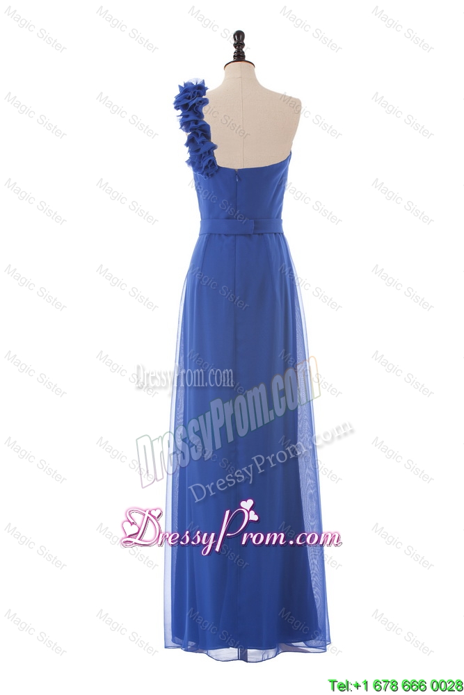 Most Popular Hand Made Flower One Shoulder Long Prom Dresses in Blue