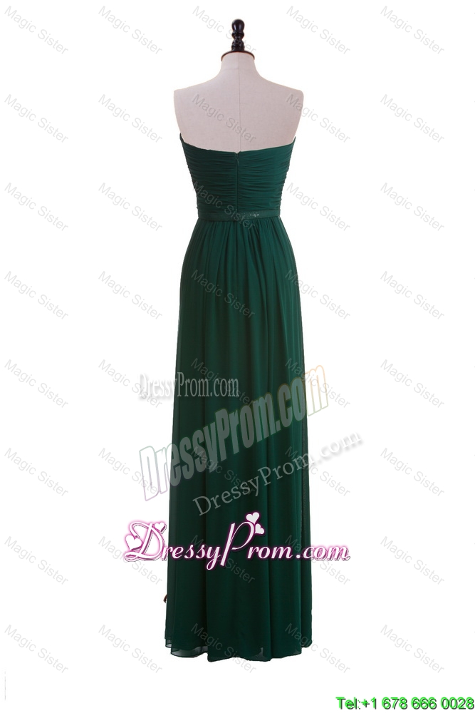 Neckline : StraplessShown Color : Dark GreenSleeve Length : sleevelessHemline : floor lengthBack Detail : ZipperFabric : ChiffonEmbellishment : RuchingOccasion : Prom,Formal Evening,Homecoming,Graduation,HolidaySeason : Spring,Summer,Fall,Winter