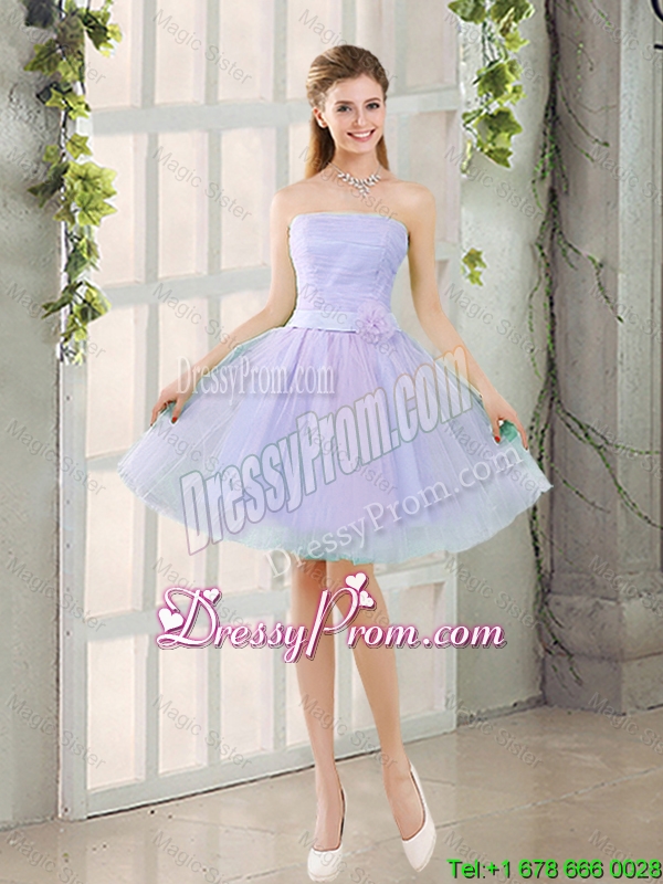 Artistic A Line Strapless Belt Prom Dresses with Hand Made Flowers