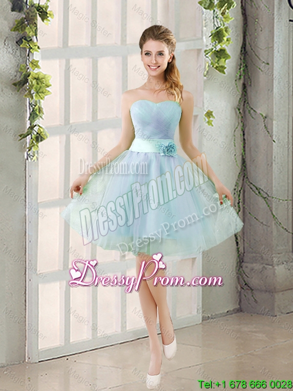 Neckline : Strapless Shown Color : Blue Silhouette : A-line Sleeve Length : sleeveless Hemline : mini length Back Detail : Lace up Fabric : Tulle Embellishment : Ruching,Belt,Hand Made Flower Occasion : Prom,Party,Homecoming,Wedding Party Season : Spring,Summer,Fall