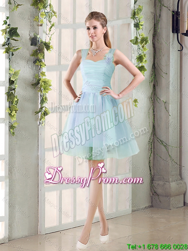 2016 Summer A Line Straps Ruching Prom Dresses with Hand Made Flowers