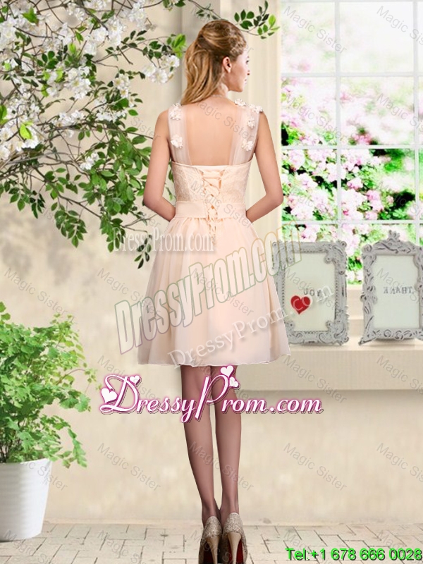 Neckline : StrapsSilhouette : A-lineSleeve Length : sleevelessHemline : mini lengthBack Detail : Lace upFabric : ChiffonEmbellishment : Lace,AppliquesOccasion : Prom,Party,Homecoming,Wedding PartySeason : Spring,Summer,Fall