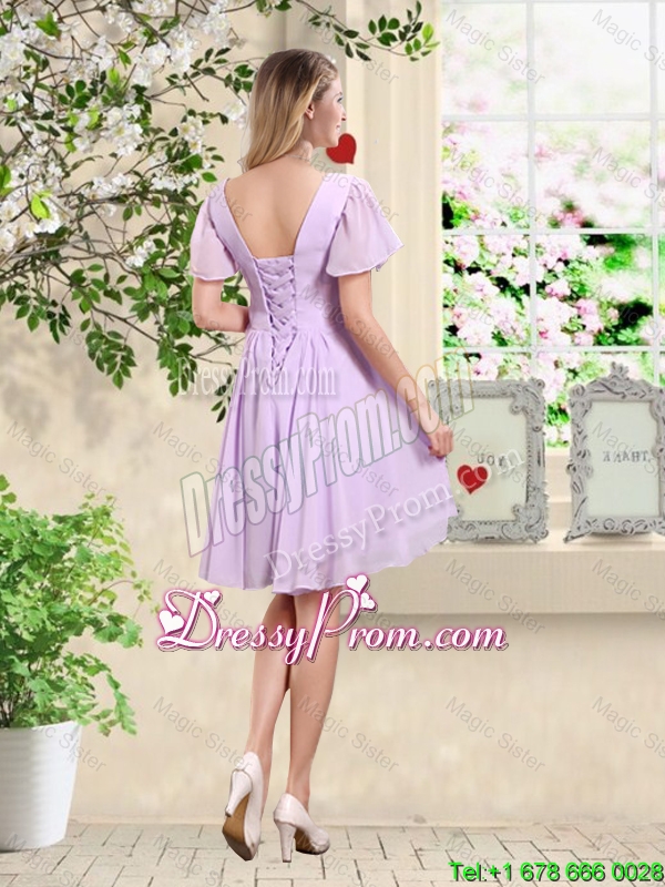 Neckline : V-neckShown Color : LavenderSilhouette : A-lineSleeve Length : sleevelessHemline : mini lengthBack Detail : Lace upFabric : ChiffonEmbellishment : BeadingOccasion : Prom,Party,Cocktail,Homecoming,Graduation,Wedding PartySeason : Spring,Summer,Fall