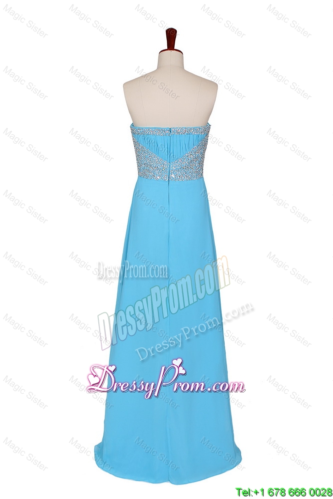 Neckline : StraplessShown Color : Baby BlueSleeve Length : sleevelessHemline : floor lengthBack Detail : ZipperFabric : ChiffonEmbellishment : BeadingOccasion : Prom,Formal Evening,Homecoming,Graduation,HolidaySeason : Spring,Summer,Fall,Winter