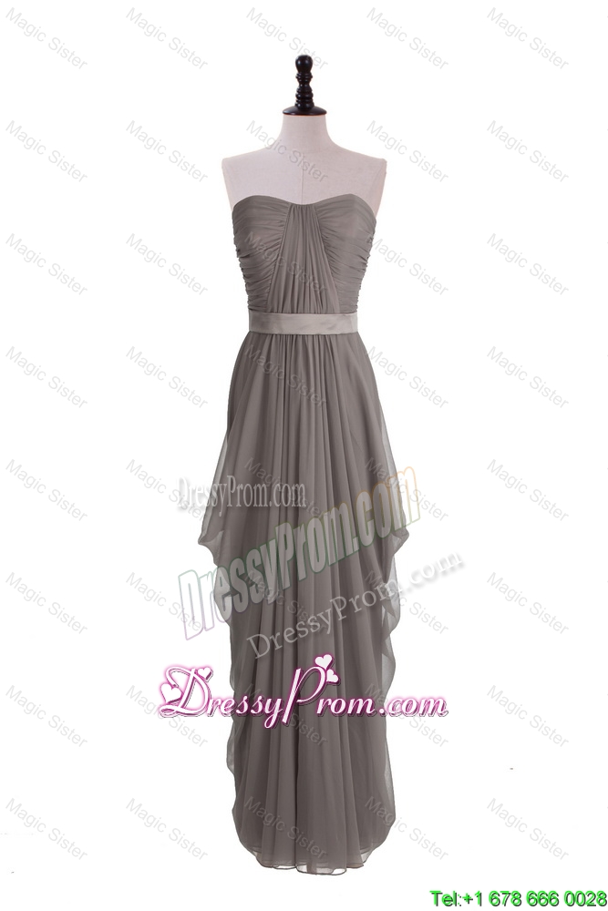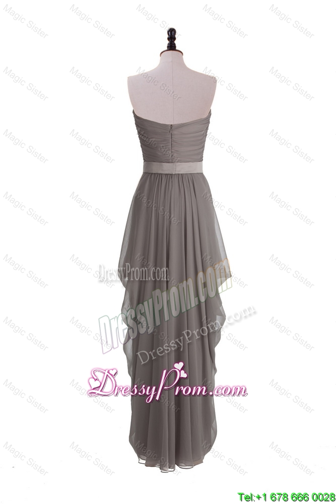 Neckline : SweetheartShown Color : GreySilhouette : EmpireSleeve Length : sleevelessHemline : floor lengthBack Detail : ZipperFabric : ChiffonEmbellishment : Ruching,BeltOccasion : Prom,Formal Evening,Homecoming,Graduation,Pageant,HolidaySeason : Spring,Summer,Fall,Winter