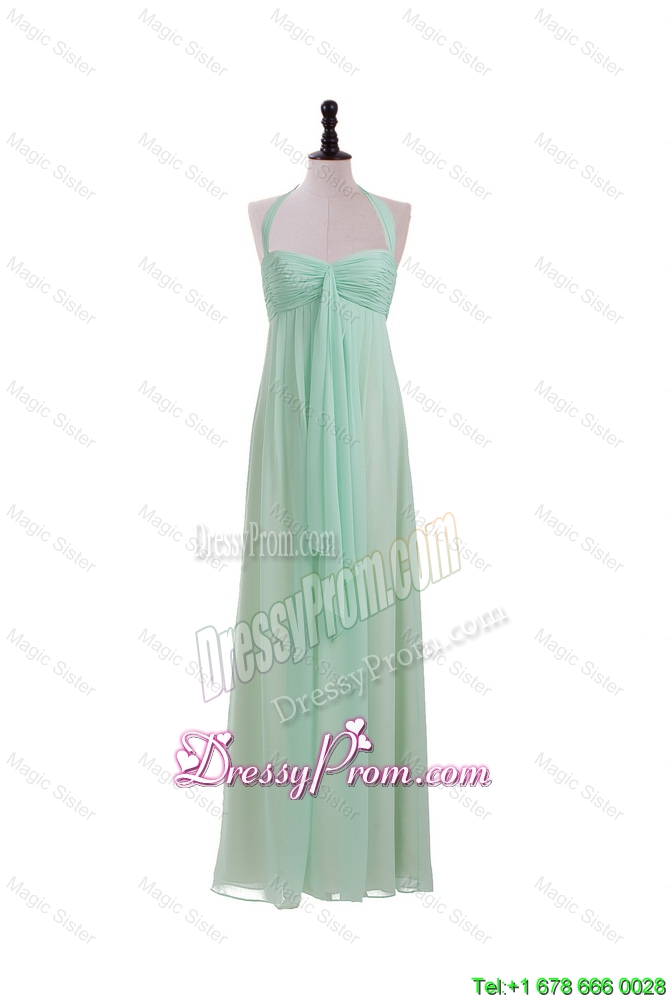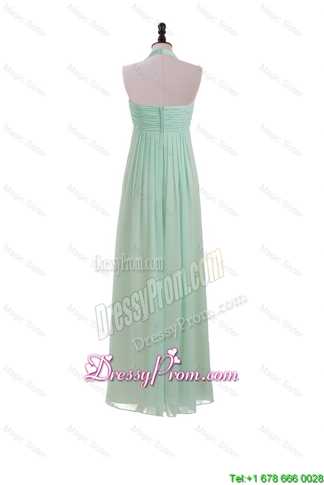 Neckline : Halter topSilhouette : EmpireSleeve Length : sleevelessHemline : floor lengthBack Detail : ZipperFabric : ChiffonEmbellishment : RuchingOccasion : Prom,Formal Evening,Homecoming,Graduation,Pageant,HolidaySeason : Spring,Summer,Fall,Winter