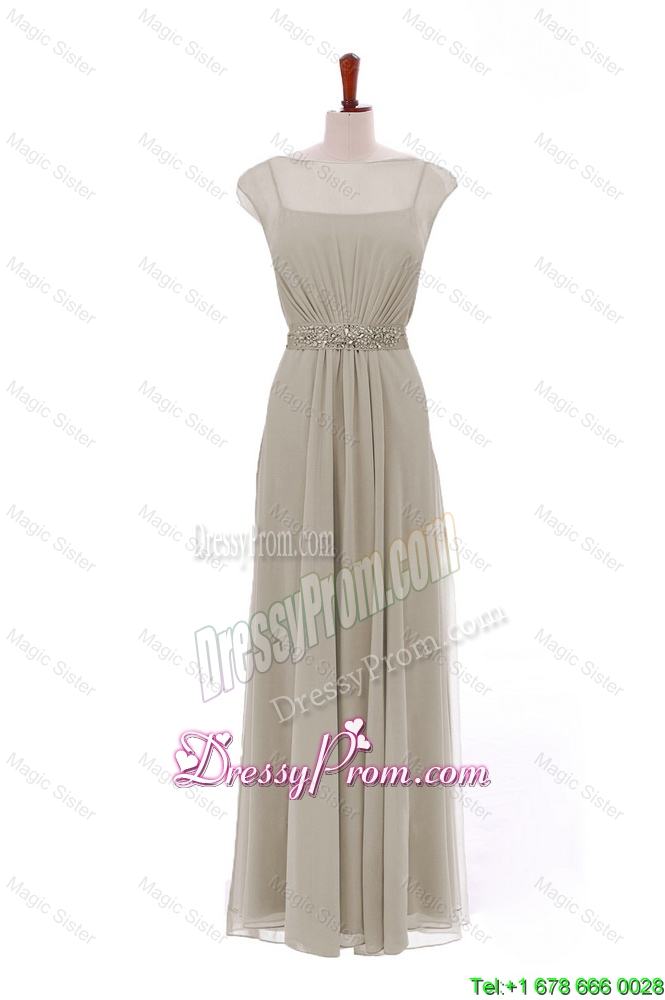 Neckline : BateauShown Color : GreySilhouette : EmpireSleeve Length : sleevelessHemline : floor lengthBack Detail : ZipperFabric : ChiffonEmbellishment : Beading,Sashes|ribbonsOccasion : Prom,Formal Evening,Homecoming,Graduation,HolidaySeason : Spring,Summer,Fall,Winter