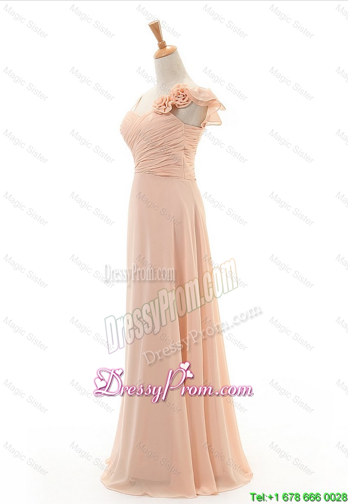 Neckline : StrapsShown Color : Pink Silhouette : Column/SheathSleeve Length : sleevelessHemline : floor lengthBack Detail : ZipperFabric : ChiffonEmbellishment : Hand Made FlowerOccasion : Prom,Formal Evening,Homecoming,Graduation,HolidaySeason : Spring,Summer,Fall,Winter