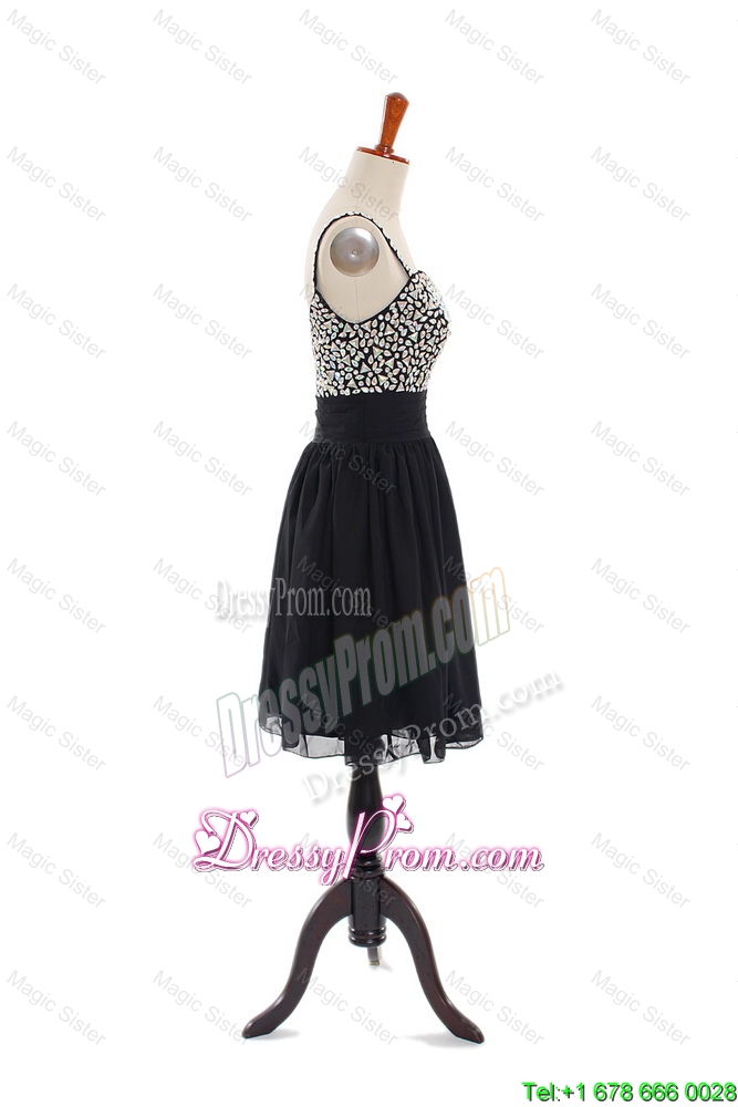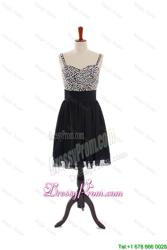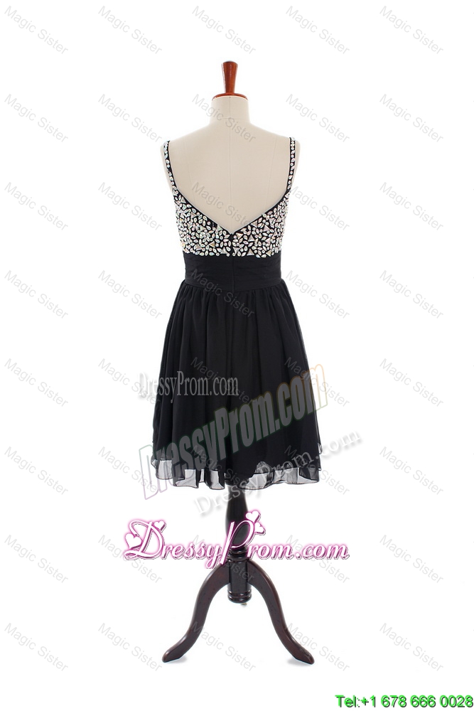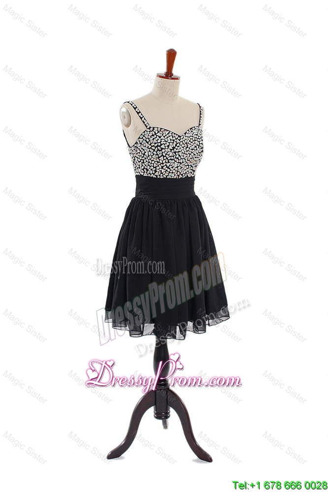 Neckline : StrapsShown Color : BlackSilhouette : ShortSleeve Length : sleevelessHemline : mini lengthBack Detail : ZipperFabric : ChiffonEmbellishment : BeadingOccasion : Prom,Party,Cocktail,Homecoming,Graduation,HolidaySeason : Spring,Summer,Fall