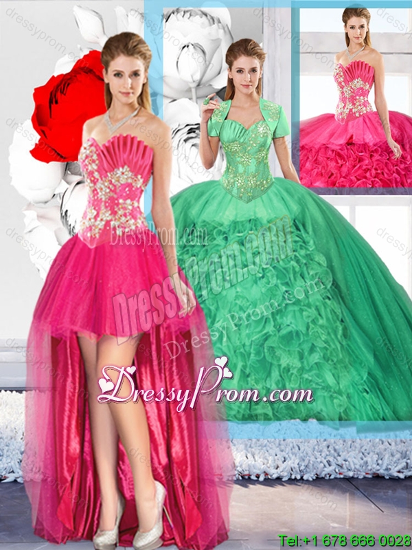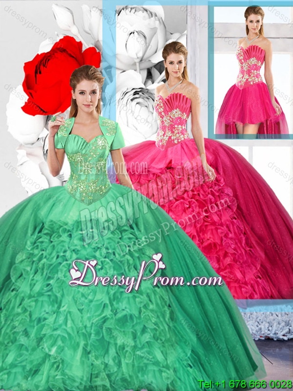 Beaded and Ruffles Inexpensive Detachable Quinceanera Dresses for 2016 Spring
