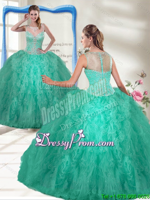 Neckline : ScoopShown Color : TurquoiseSilhouette : Ball GownsSleeve Length : sleevelessHemline : floor lengthBack Detail : ZipperFabric : OrganzaEmbellishment : Beading,RufflesOccasion : Military Ball,Sweet 16,QuinceaneraSeason : Spring,Summer,Fall,Winter