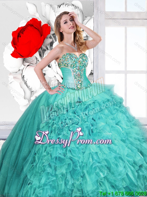Classical Ruffles and Beaded Quinceanera Gowns in Turquoise