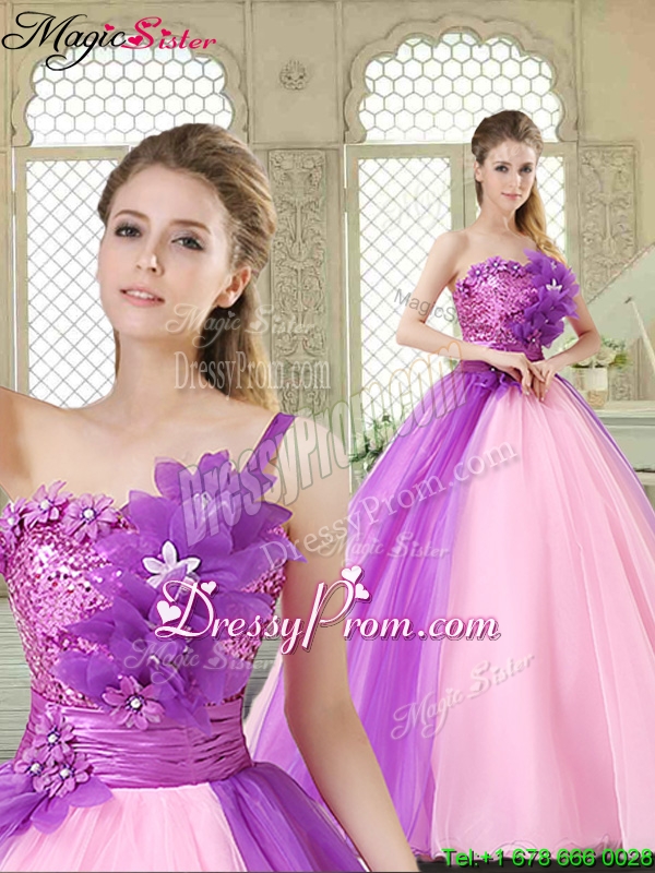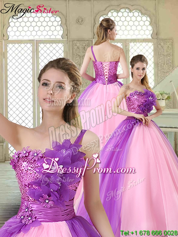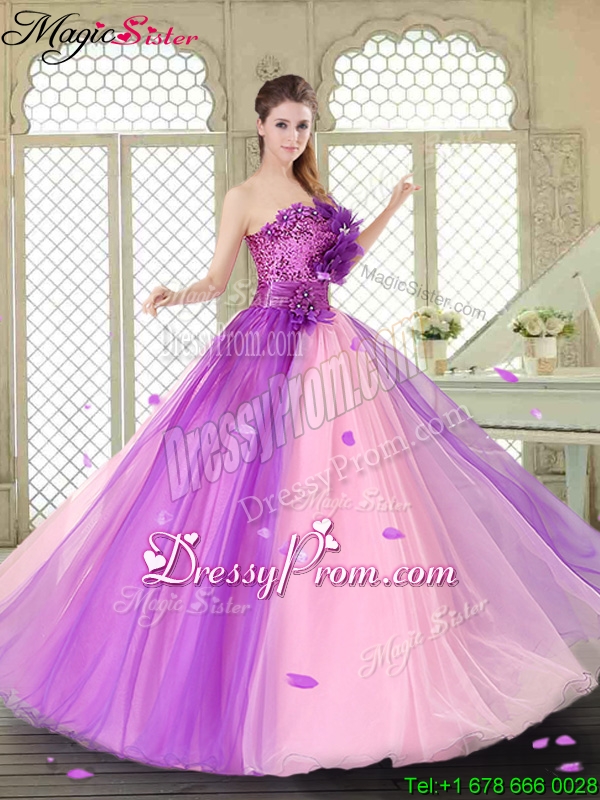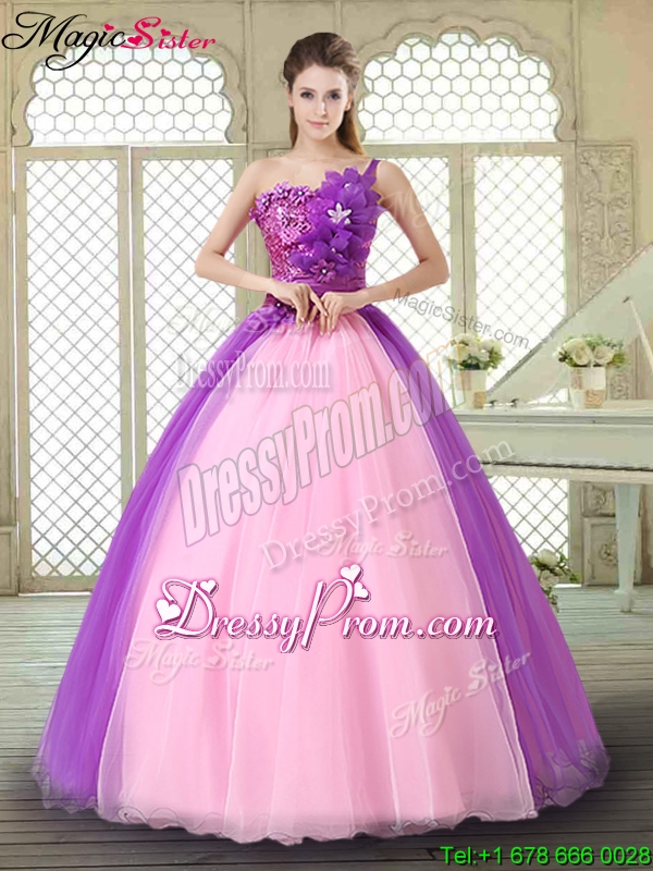 Neckline : One shoulderShown Color : Multi-colorSilhouette : Ball GownsSleeve Length : sleevelessHemline : floor lengthBack Detail : Lace upFabric : OrganzaEmbellishment : Beading,Sequins,Hand Made FlowerOccasion : Military Ball,Sweet 16,QuinceaneraSeason : Spring,Summer,Fall,Winter