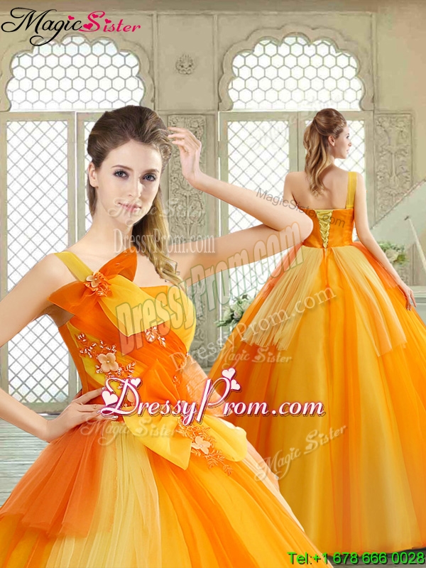 Neckline : One shoulderShown Color : Multi-colorSilhouette : Ball GownsSleeve Length : sleevelessHemline : floor lengthBack Detail : Lace upFabric : TulleEmbellishment : Appliques,BowknotOccasion : Military Ball,Sweet 16,QuinceaneraSeason : Spring,Summer,Fall,Winter