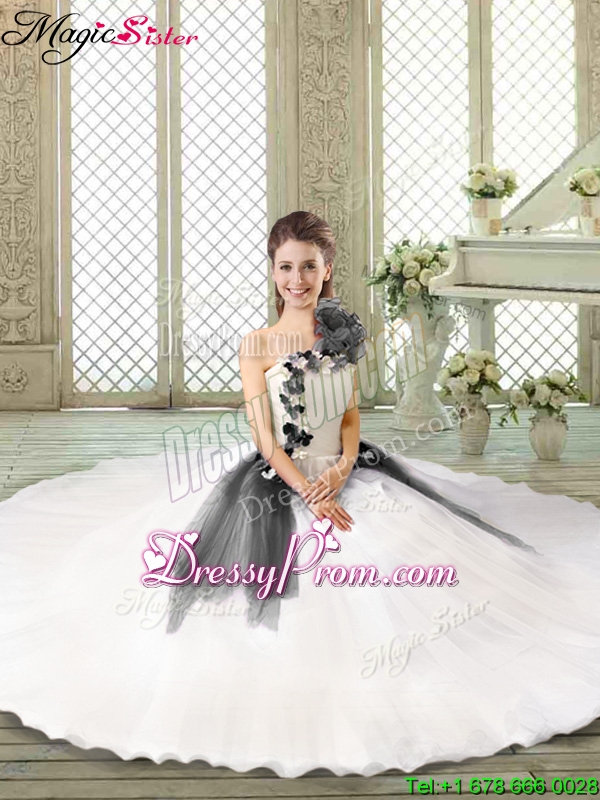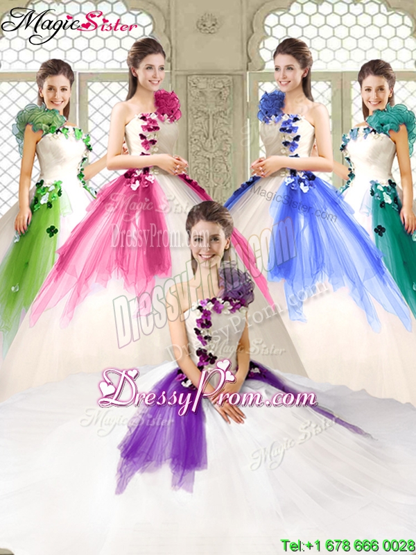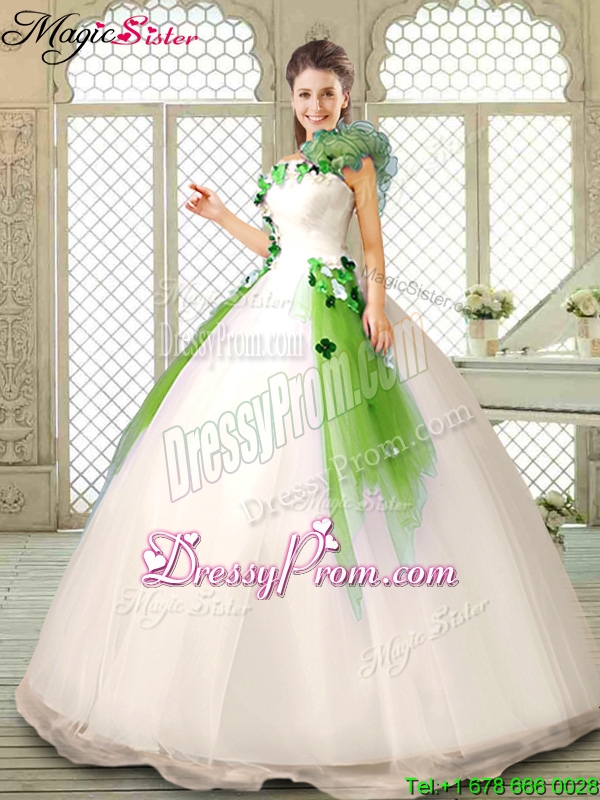 Neckline : One shoulderShown Color : Multi-colorSilhouette : Ball GownsSleeve Length : sleevelessHemline : floor lengthBack Detail : Lace upFabric : OrganzaEmbellishment : Appliques,RufflesOccasion : Military Ball,Sweet 16,QuinceaneraSeason : Spring,Summer,Fall,Winter