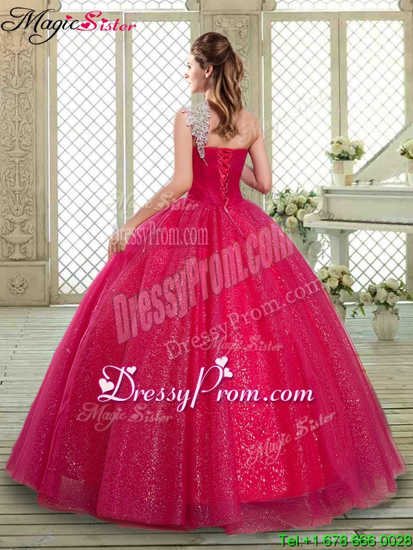 Neckline : One shoulderShown Color : Coral RedSleeve Length : sleevelessHemline : floor lengthBack Detail : Lace upFabric : TulleEmbellishment : BeadingOccasion : Military Ball,Sweet 16,QuinceaneraSeason : Spring,Summer,Fall,Winter