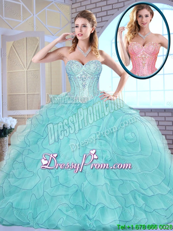 Latest Beading and Ruffles Quinceanera Dresses in Aqua Blue