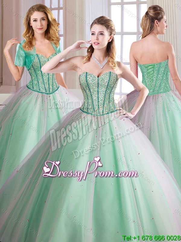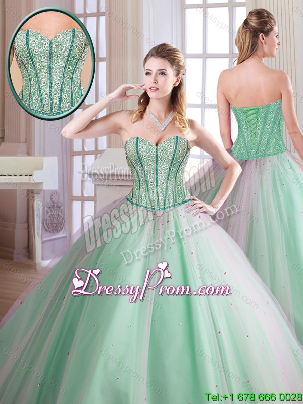 Neckline : SweetheartShown Color : Apple GreenSilhouette : Ball GownsSleeve Length : sleevelessHemline : floor lengthBack Detail : Lace upFabric : TulleEmbellishment : BeadingOccasion : Military Ball,Sweet 16,QuinceaneraSeason : Spring,Summer,Fall,Winter