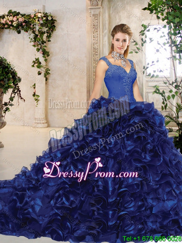 Perfect Straps Brush Train Quinceanera Gowns in Royal Blue