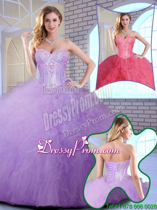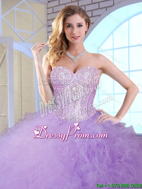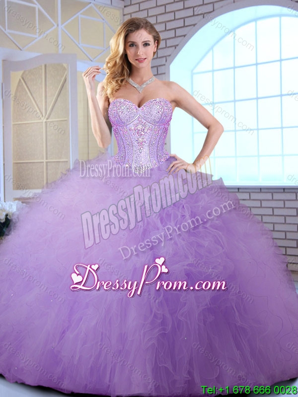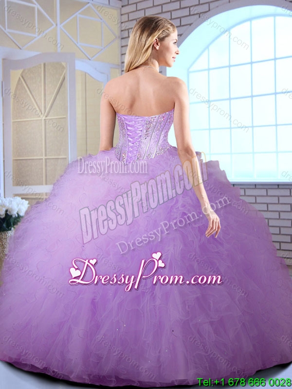 Neckline : SweetheartShown Color : LavenderSilhouette : Ball GownsSleeve Length : sleevelessHemline : floor lengthBack Detail : Lace upFabric : TulleEmbellishment : RufflesOccasion : Military Ball,Quinceanera,Birthday PartySeason : Spring,Summer,Fall,Winter