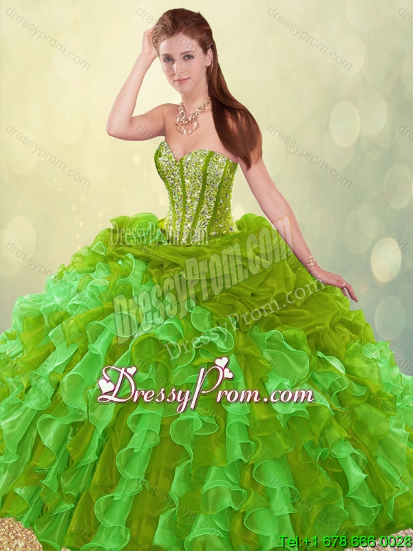 Neckline : SweetheartSilhouette : Ball GownsSleeve Length : sleevelessHemline : floor lengthBack Detail : Lace upFabric : OrganzaEmbellishment : RufflesOccasion : Military Ball,Sweet 16,QuinceaneraSeason : Spring,Summer,Fall,Winter