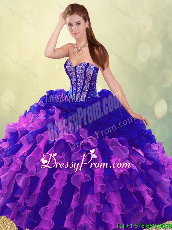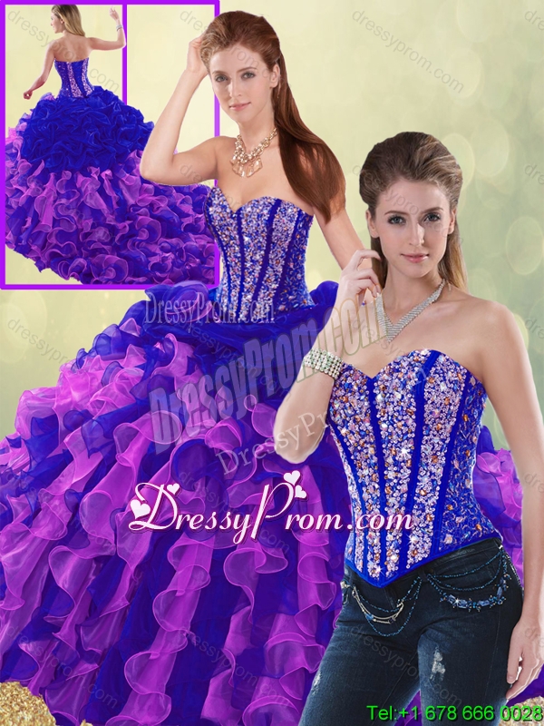 Exclusive Multi Color Brush Train Quinceanera Dresses