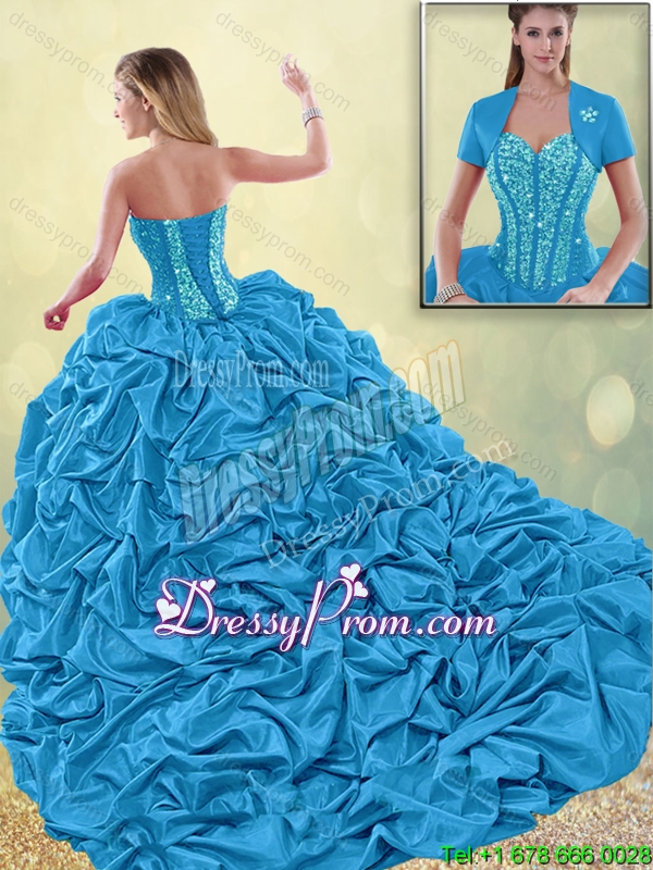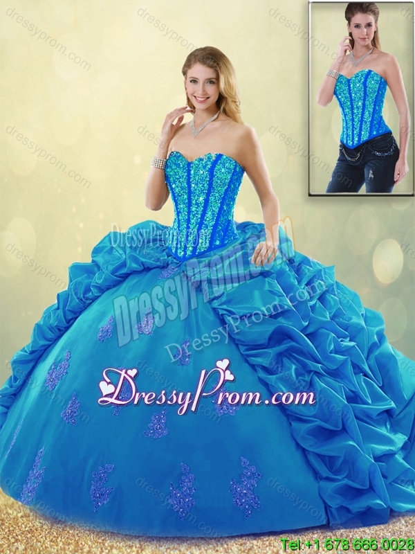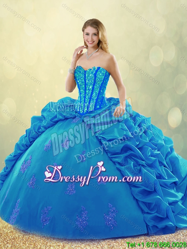 Neckline : SweetheartShown Color : BlueSilhouette : Ball GownsSleeve Length : sleevelessHemline : with trainBack Detail : Lace upFabric : TaffetaEmbellishment : Beading,AppliquesSeason : Spring,Summer,Fall,Winter