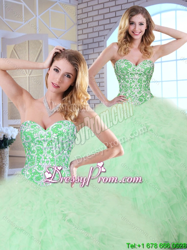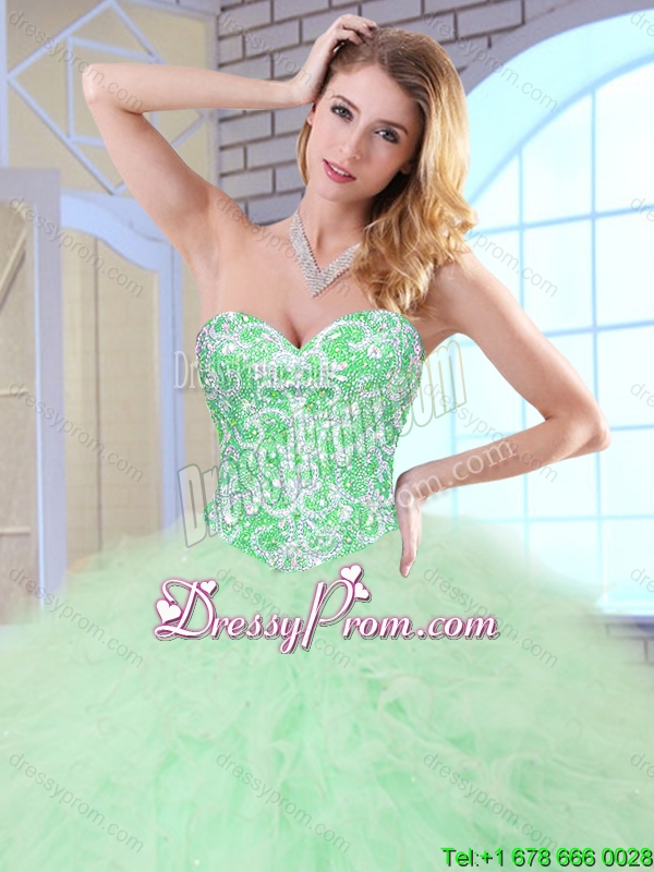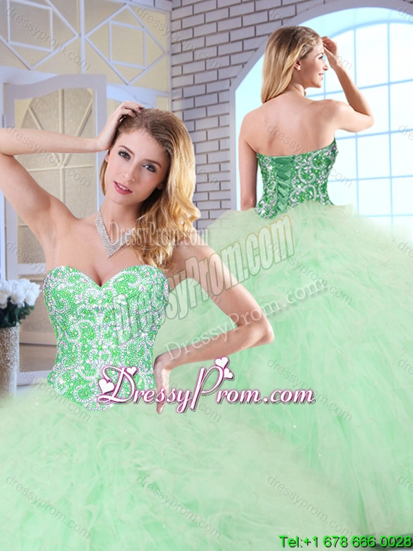 Neckline : SweetheartShown Color : Apple GreenSilhouette : Ball GownsSleeve Length : sleevelessHemline : floor lengthBack Detail : Lace upFabric : TulleEmbellishment : Beading,RufflesOccasion : Military Ball,Sweet 16,QuinceaneraSeason : Spring,Summer,Fall,Winter