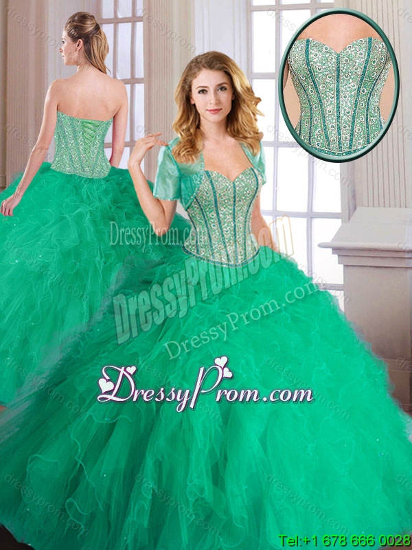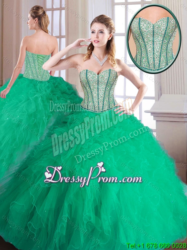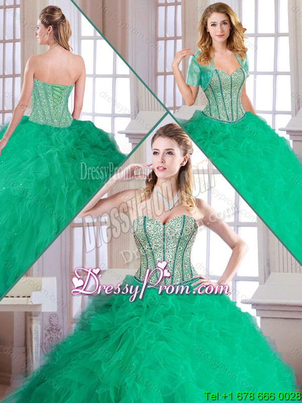 Cheap 2016 Beading and Ruffles Quinceanera Gowns in Turquoise