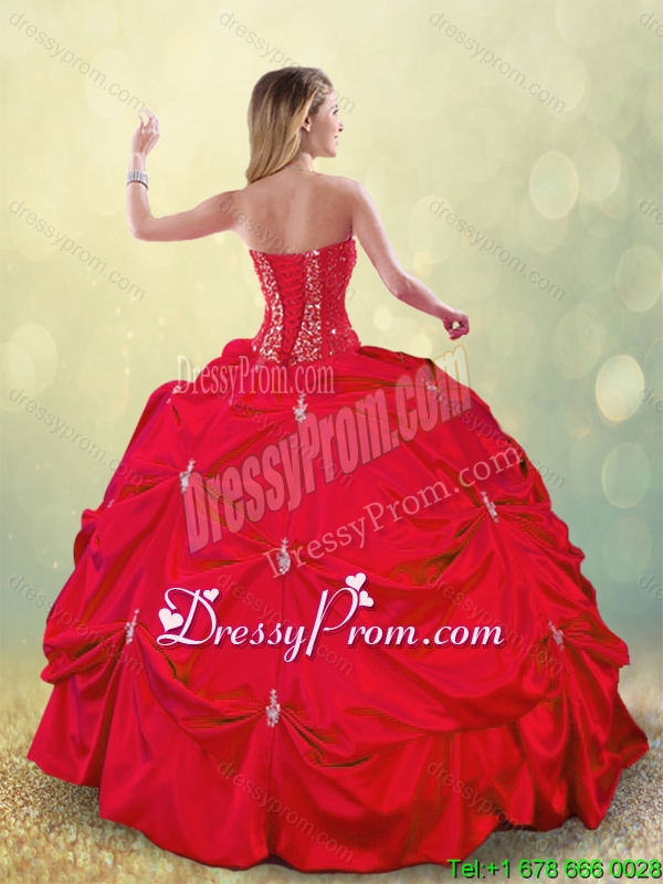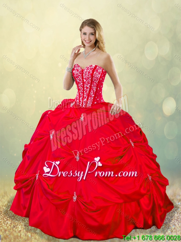 Neckline : SweetheartShown Color : RedSilhouette : Ball GownsSleeve Length : sleevelessHemline : floor lengthBack Detail : Lace upFabric : TaffetaEmbellishment : BeadingOccasion : Military Ball,Sweet 16,QuinceaneraSeason : Spring,Summer,Fall,Winter